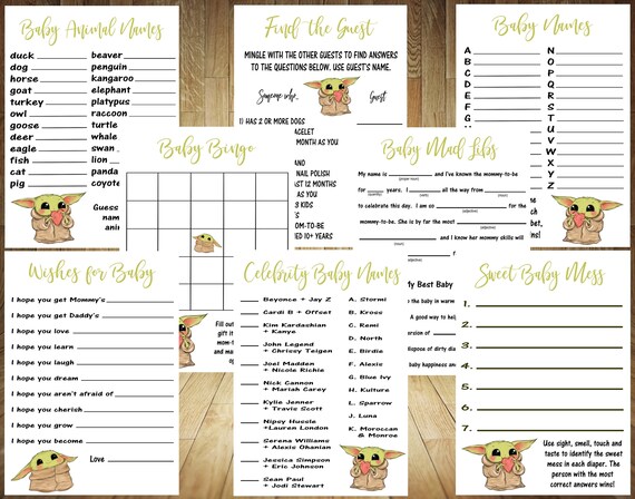 Choose Your Games Yoda Baby Shower Games Yoda Baby Shower Etsy Canada